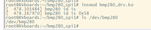 Source Code Path: driver_210519mp280_spi1 Powering code: bmp280_drv.c Compiler: 1、Copy "driver_210519 mp280_spi1" to the "lichee" directory in tina-d1 sdk 2、Enter bmp280_spi1 and execute the "make" command to generate the bmp280_drv.ko file 3、Copy to the development board, execute insmod bmp280_drv.ko, load the driver module and view the device "/dev/bmp280", as shown below
