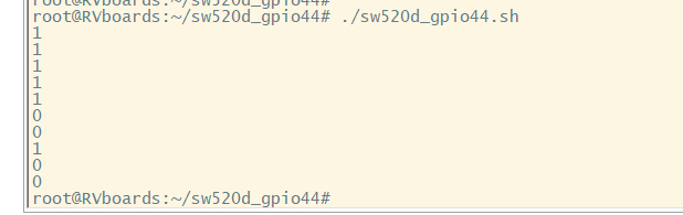 Test script program driver210519 vboards_sw520d_gpio44sw520d_gpio44.sh Test command: 1、Increase execution authority: chmod +x sw520d_ gpio44.sh 2、Execute the script program: ./sw520d_gpio44.sh, turn the tilt module, and observe the reading