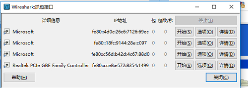 5:Install the network packet capture tool Wireshark, we can use this tool to view the data sent and received by the PC network port during the experiment. 6:Open the packet capture tool after the project is off the board, select the packet capture interface. (Select the last one)