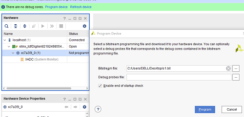 Burn Hummingbird IP core to fpga. Put the fpga project file into a non-Chinese directory. 1、Connect: jtag port to xilinx jtag. 2、download the ip core of Hummingbird e200 to the development board. As shown in the figure.