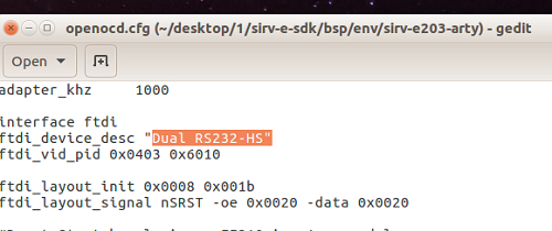 then it may be that the device name needs to be changed. Open the directory /home/a/desktop/1/sirv-e-sdk/bsp/env/sirv-e203-arty and open the file shown in the following figure.