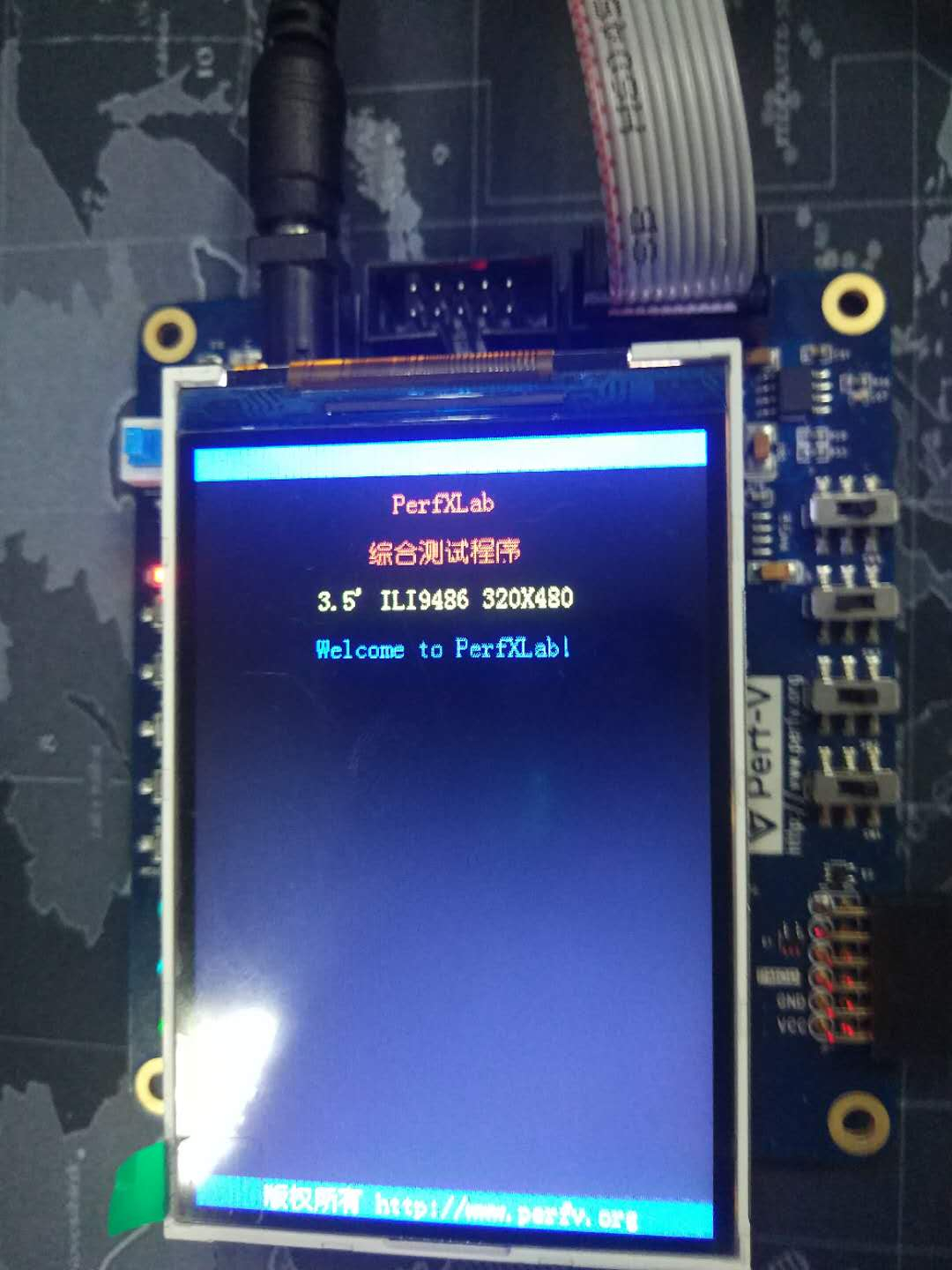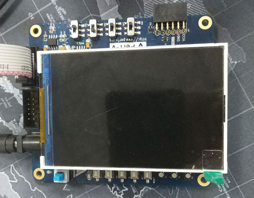 4、 to the development board power, according to the above two experiments to compile and download the program, TFT screen can normally display the test program, the following figure.