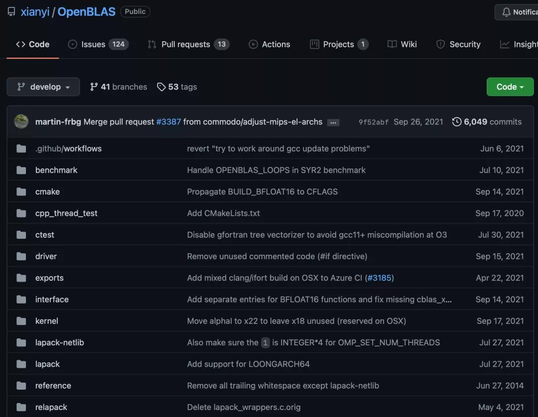 【OpenBLAS wiki】OpenBLAS is an optimized Basic Linear Algebra Subprograms (BLAS) library based on GotoBLAS 21.13 BSD version. Openblas is an optimized Blas Computing Library Based on BSD license (open source). It was initiated by Zhang Xianyi on July 20, 2013 and released the first version of openblas 0.2.7. As the initiator and main maintainer of openblas open source project, Zhang Xianyi won the second prize of 2016ccf science and Technology Award [2]. Blas (Basic Linear Algebra Subprograms) is an application program interface (API) standard, which is used to standardize and publish the numerical library of basic linear algebra operations (such as vector or matrix multiplication). Openblas is a specific implementation of Blas standard. So far, openblas has released more than 30 releases, obtained more than 3700 stars and thousands of forks. On August 1, 2013, openblas 0.2.8 version On July 20, 2013, openblas 0.2.7 version ...... September 3, 2016, OpenBLAS 0.2.19, multi-core ...... August 19, 2019, OpenBLAS 0.3.7 version December 13, 2020, OpenBLAS 0.3.13 version March 18, 2021, OpenBLAS 0.3.14 version