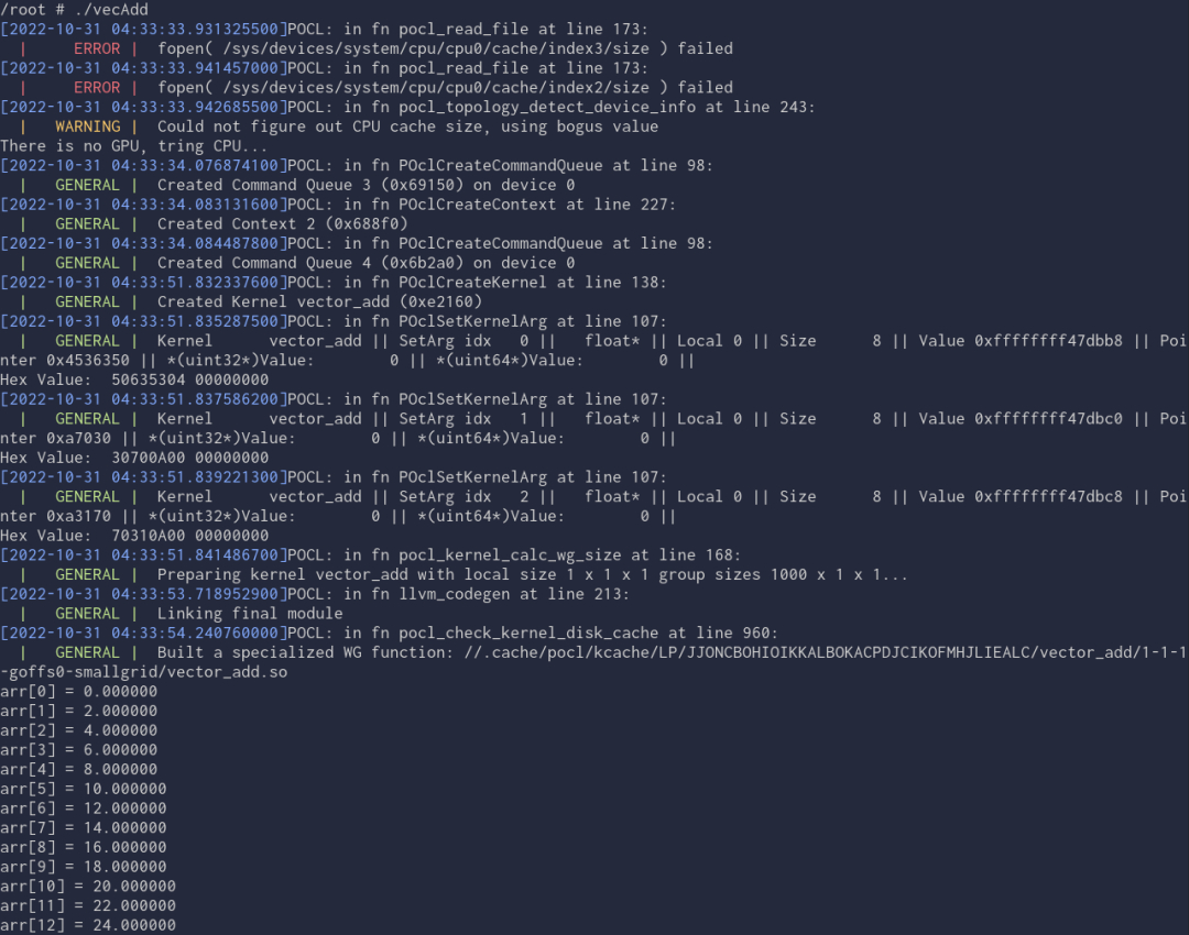 > There's no official support for RISC-V[5]. And errors may occur if cross-compiling directly. The former has added a pipeline for RISC-V and supports for Newlib and Vortex[6][7]. However, this work is too far back and not maintained. This work only supports PoCL1.5 and LLVM10, which cannot take advantage of the convenience of OpenCL3.0 and the optimization ability of vectorization support of LLVM14. **