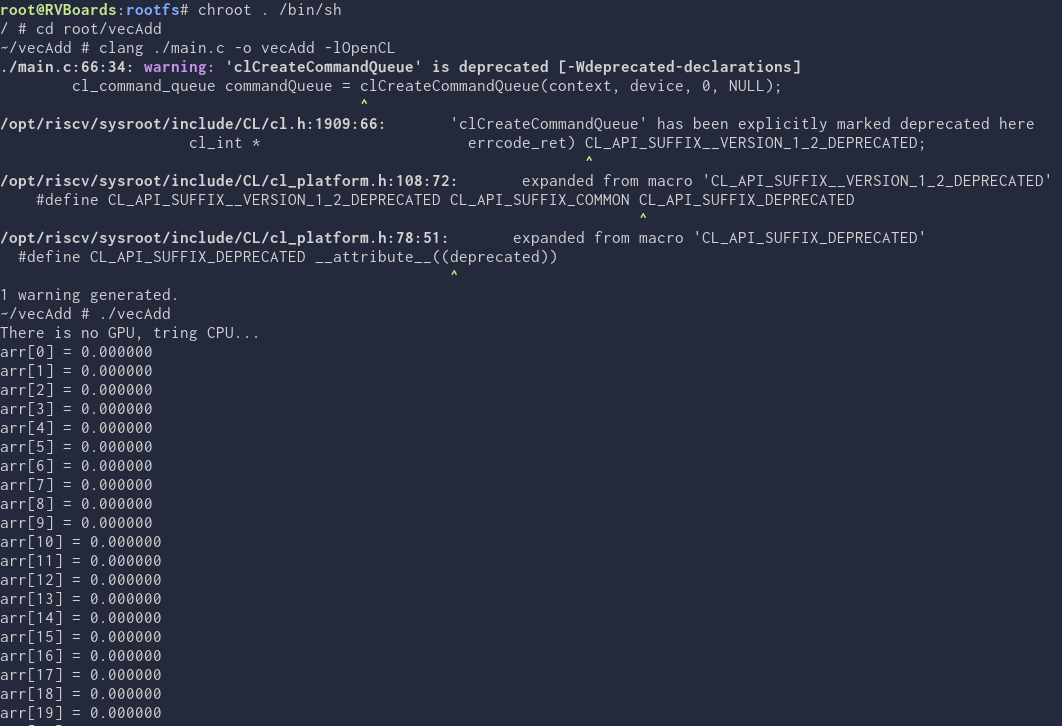 has modified the original PoCL sources so that the embedded engineers can build and run smoothly without compiling errors. Now RISC-V boards can also run OpenCL3.0 and enjoy the benefits of OpenCL3.0 and LLVM.