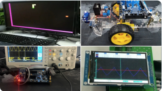 On the Perf-V platform, you can learn both FPGA programming and RISC-V Core design and verification. We provide a large number of RISC-V Core experiment cases: three-color LED light display experiment, LED dot matrix experiment, smart car, TFT screen display experiment, simple oscilloscope experiment, quadcopter experiment, waveform generator experiment. It also provides experimental cases of FPGA: water lamp, DDR3, XADC, camera HDMI display, camera VGA display, USB transmission, and other interesting cases.